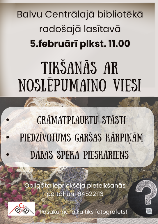 Balvu Centrālā bibliotēka šajā nedēļā kļūst par satikšanās vietu, kurā caur grāmatām, sarunām un mākslu mēs kopā izzinām savu pilsētu un tās cilvēkus.