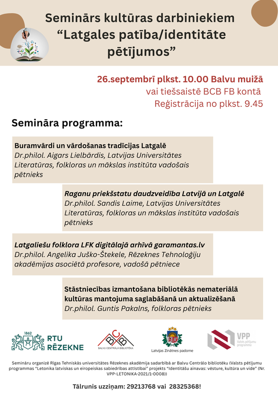 Semināra kultūras darbiniekiem “Latgales patība/identitāte pētījumos” programma
