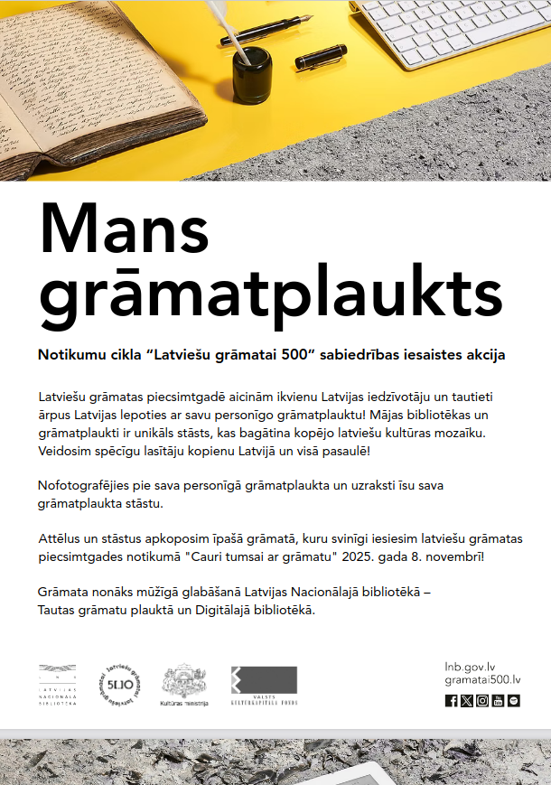 Aicinām ikvienu lepoties ar savu grāmatplauktu un pievienoties akcijai “Mans grāmatplaukts”. Tava mājas bibliotēka ir daļa no mūsu kopīgā kultūras stāsta!