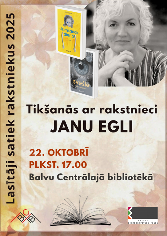 Pasākums notiks 22.oktobrī plkst. 17.00 Balvu Centrālajā bibliotēkā.