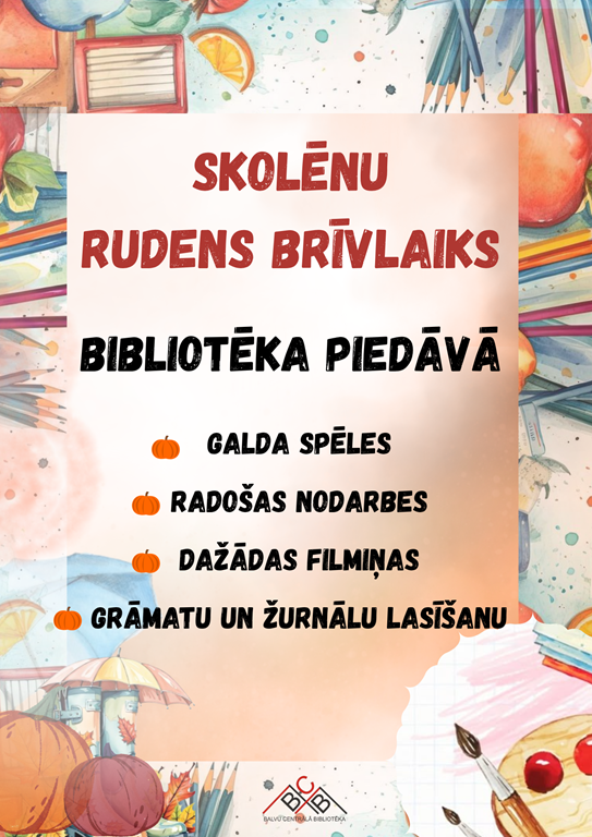 No 20. oktobra līdz 24. oktobrim skolēniem ir rudens brīvlaiks, un Balvu Centrālā bibliotēka aicina skolēnus to pavadīt radoši un interesanti!