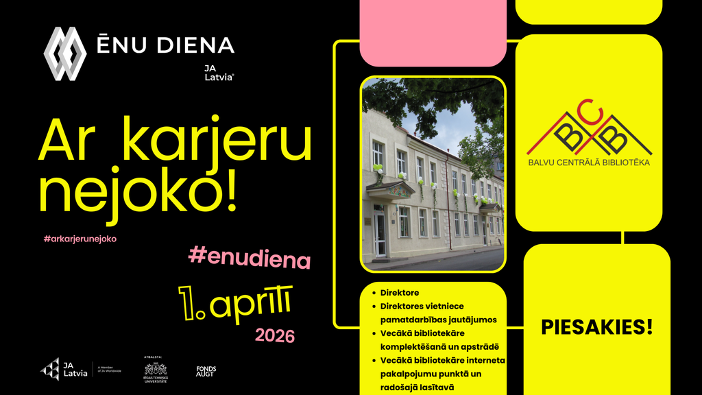 Balvu Centrālā bibliotēka aicina skolēnus piedalīties Ēnu diena, kas notiks 1. aprīlī, un iepazīt bibliotēkas darbu no iekšpuses!