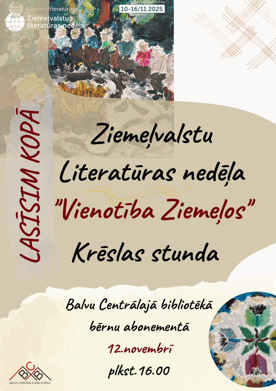 12. novembrī plkst. 16:00 aicinām bērnus uz Krēslas stundu, kur kopīgi lasīsim grāmatu un baudīsim Ziemeļvalstu literatūras pasauli.